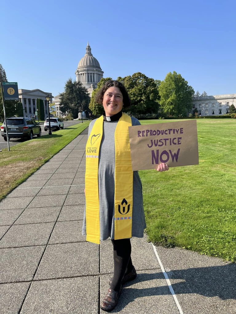 This weekend I attended a rally for abortion rights wearing my clerical “uniform” that marks me as clergy in public. I chose to make my clergy status so visible for a deliberate reason, in order to show that faith and religion are not automatically only on the side of limiting reproductive justice and bodily autonomy. I was the only person publicly proclaiming themself to be a person of faith at the event, and I had some good conversations with people who were curious what church or faith group I was from.